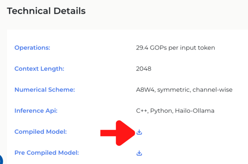 https://hailo.ai/products/hailo-software/model-explorer/generative-ai/qwen2-1-5b/のページ下部からCompiled Modelをダウンロードします。ファイルサイズが大きいため、かなり時間がかかります。