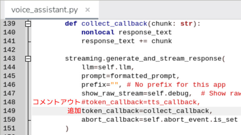 ”token_callback=tts_callback”を”token_callback=collect_callback”に変更
