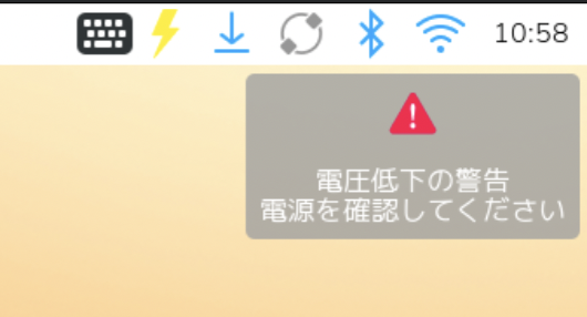 秋月電子の「スイッチングACアダプター(USB ACアダプター) Type-Cオス 5.1V 3.8A」を使用すると、起動時に警告メッセージが表示されますが、実際には問題なく使用できます。