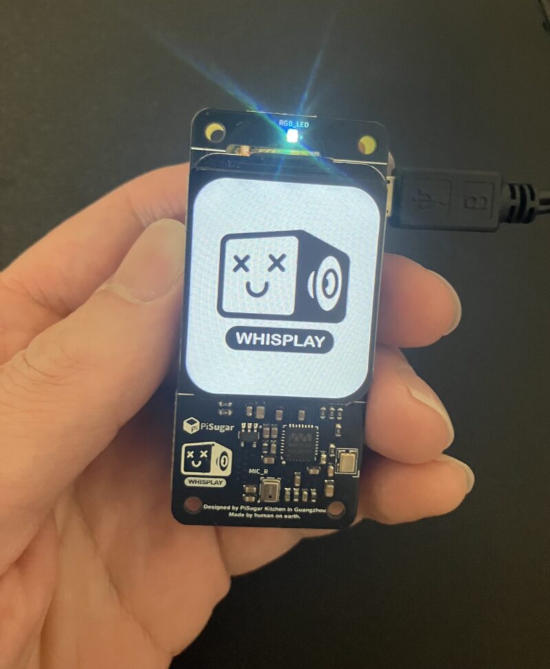 メーカーが公開している音声チャットボット「Whisplay AI Chatbot」を使うことで、会話デバイスを簡単に構築できます。ボタンを押して話しかけると、AIが音声で返答する仕組みです。