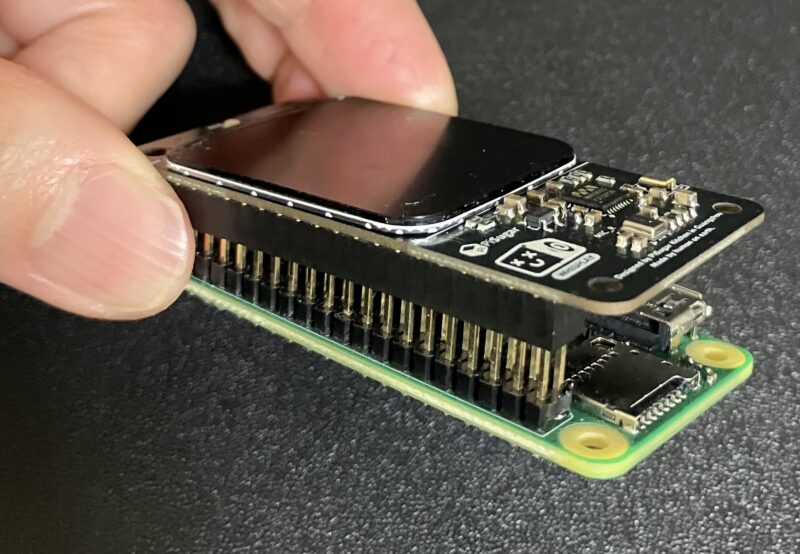 Raspberry PiのGPIOピンに差し込みます。この際、LCD部分を押さえないように注意しましょう。