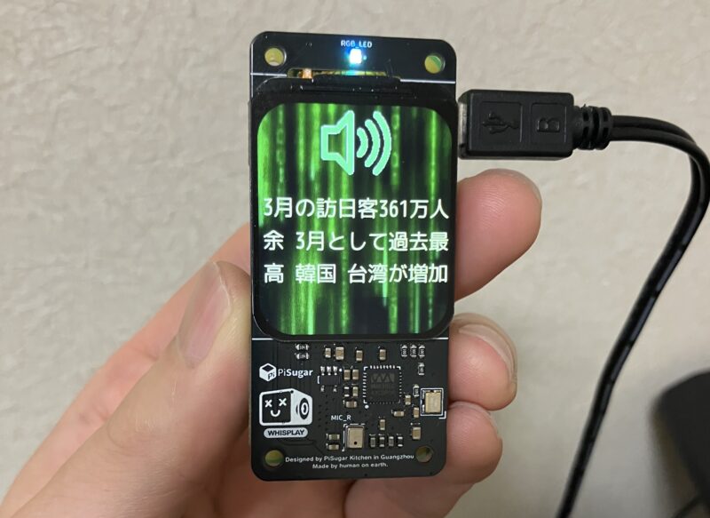 ここからはWhisplay HATの独自の使い方を紹介します。API料金を気にせず使える方法として、ローカル環境だけで音声を生成する構成を考えました。今回はインターネットからニュースを取得し、その見出しを音声で読み上げるガジェットを作成します。