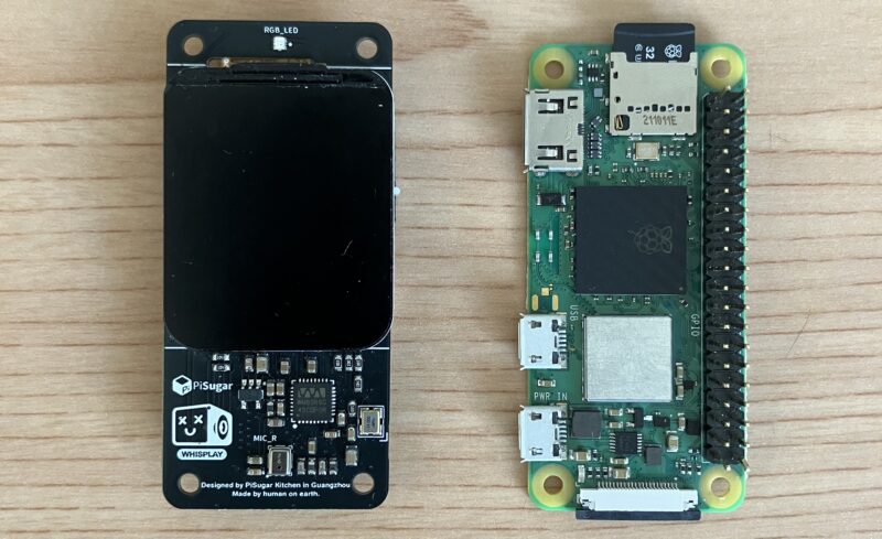 以前から音声で操作・応答できるデバイス制作に興味があったものの、なかなかコンパクトなスピーカーが見つからずに二の足を踏んでいました。Whisplay HATはLCD、ボタンまで一体化されており、この1枚で表示と音声の両方を手軽に扱える点が大きな魅力です。