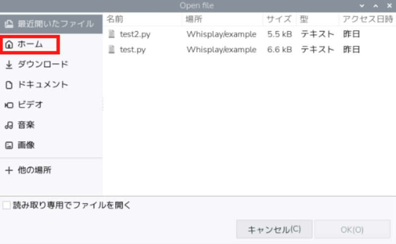 再起動したら、Whisplay HATの動作を確認するためのテストプログラムを実行してみましょう。以下のコマンドでtest.pyを起動します。